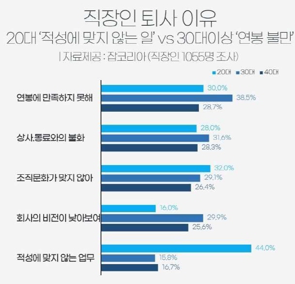 20´ë Á÷ÀåÀÎ 10¸í Áß 4.4¸íÀÌ Àû¼º¿¡ ¸ÂÁö ¾Ê´Â ¾÷¹« ¶§¹®¿¡ ȸ»ç¸¦ ±×¸¸µÐ´Ù´Â »ç½ÇÀº